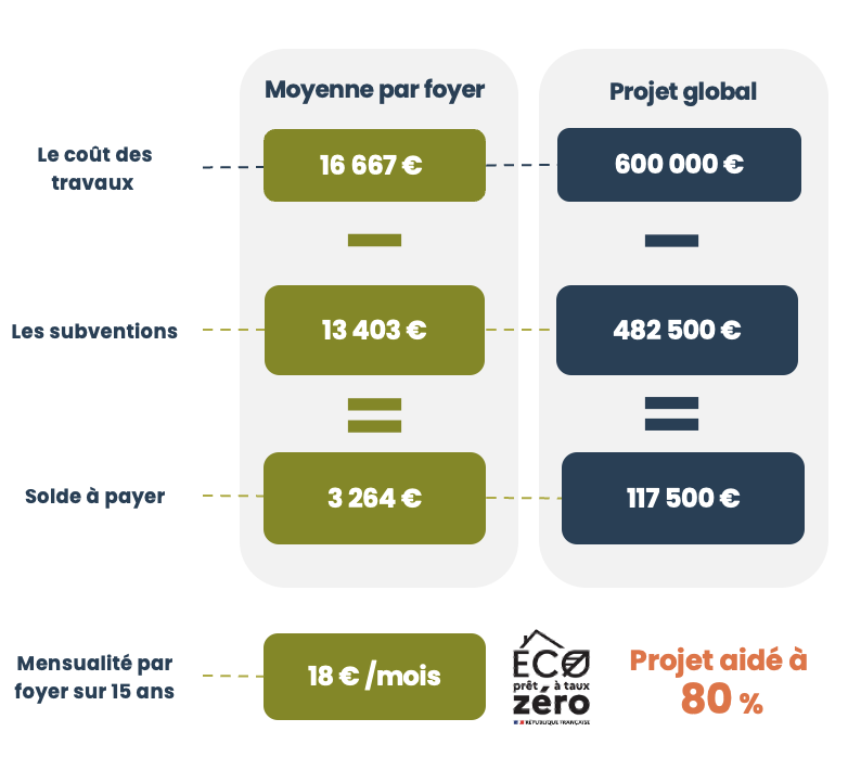 - Simulation des aides financières à la rénovation énergétique et des gains sur les dépenses énergétiques.