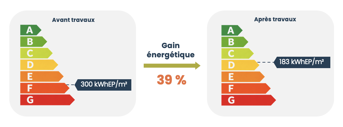 - Conso moyenne : 300 kWh/m².an